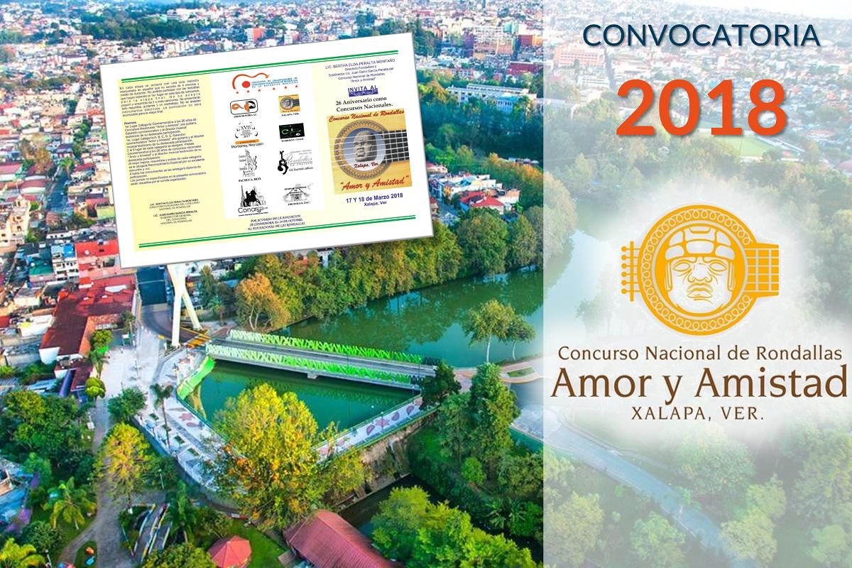 Se invita a participar en el XXVI Concurso Nacional de Rondallas Amor y Amistad 2018 a celebrarse los días 17 y 18 de marzo en la ciudad de Xalapa, Veracruz. Podrán participar todas las rondallas de la República Mexicana con un máximo de 19 integrantes y un mínimo de 10.