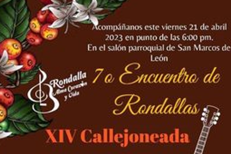 Acompaña este viernes 21 de abril de 2023 en punto de las 18:00 horas (hora local) en el Salón Parroquial de San Marcos de León, el 7° Encuentro de Rondallas San Marcos de León.